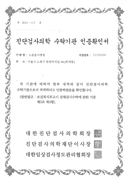 병리과 정도관리 인증서
